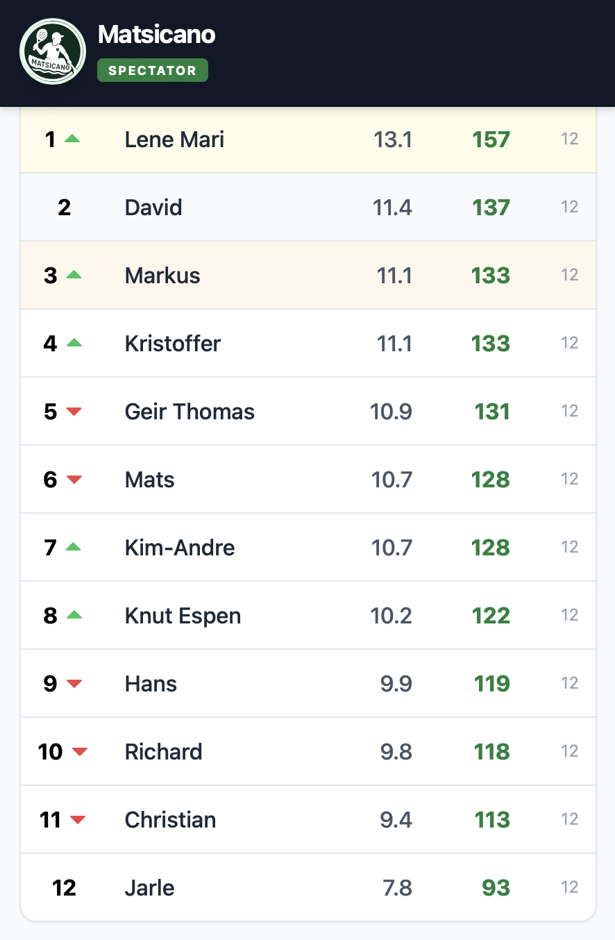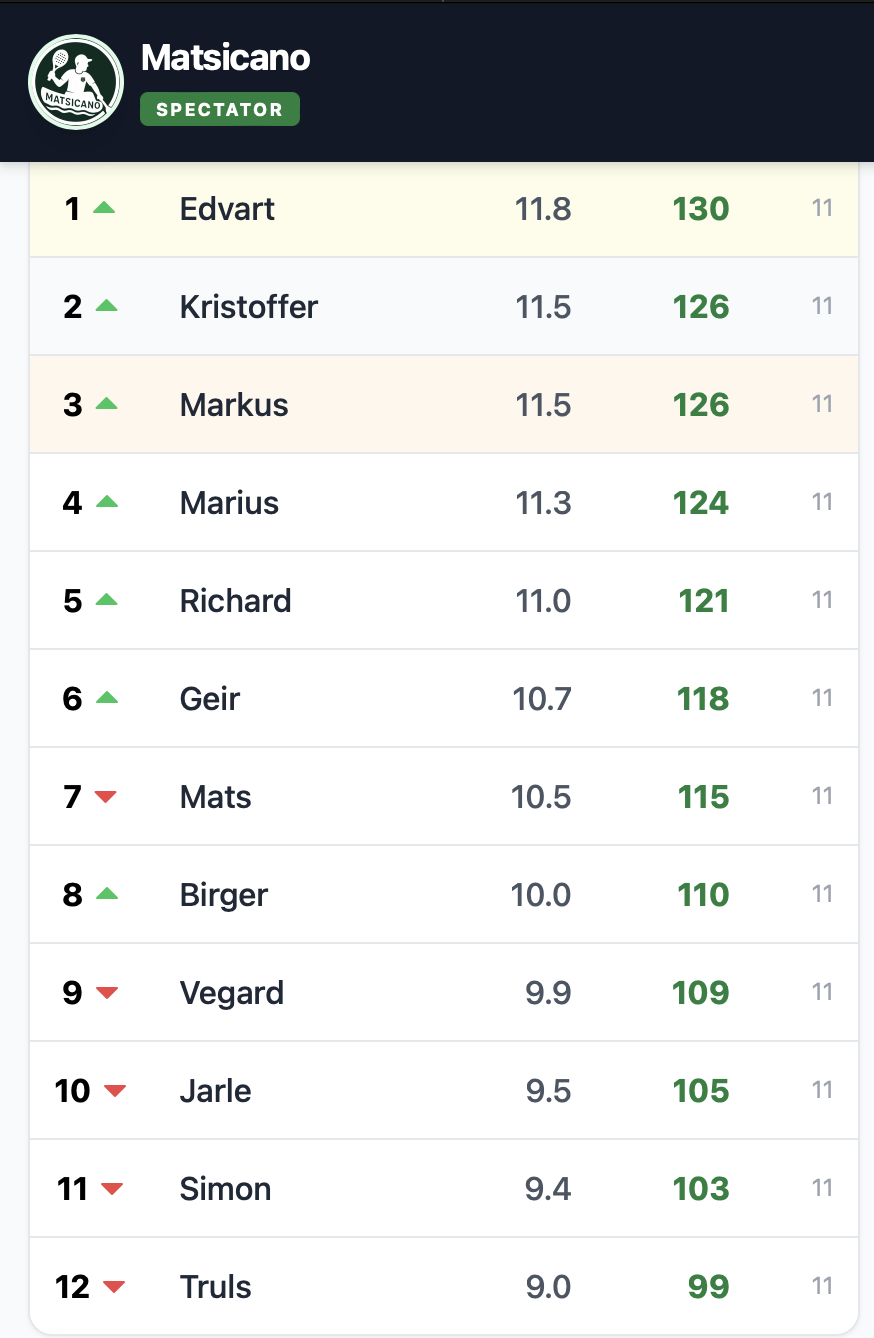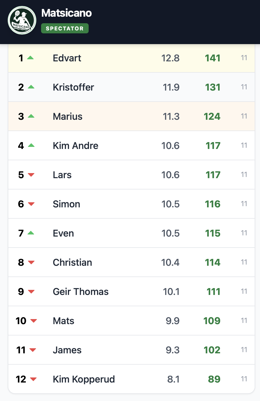 Resultatene fra lørdagens Matsicano, 29.nov 2025.