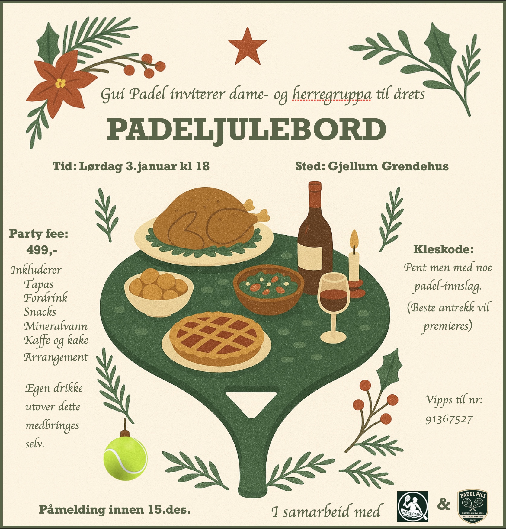 Husk påmelding til Gui Padel sitt julebord, senest 15.des! Påmelding ved å vippse.