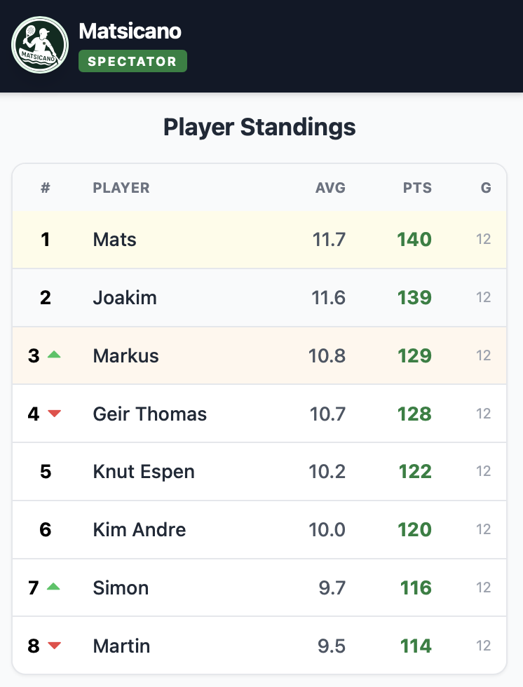 Bli med i vårt fellesskap og få tilgang til live score, tabeller og muligheten til å registrere egne poeng enkelt.